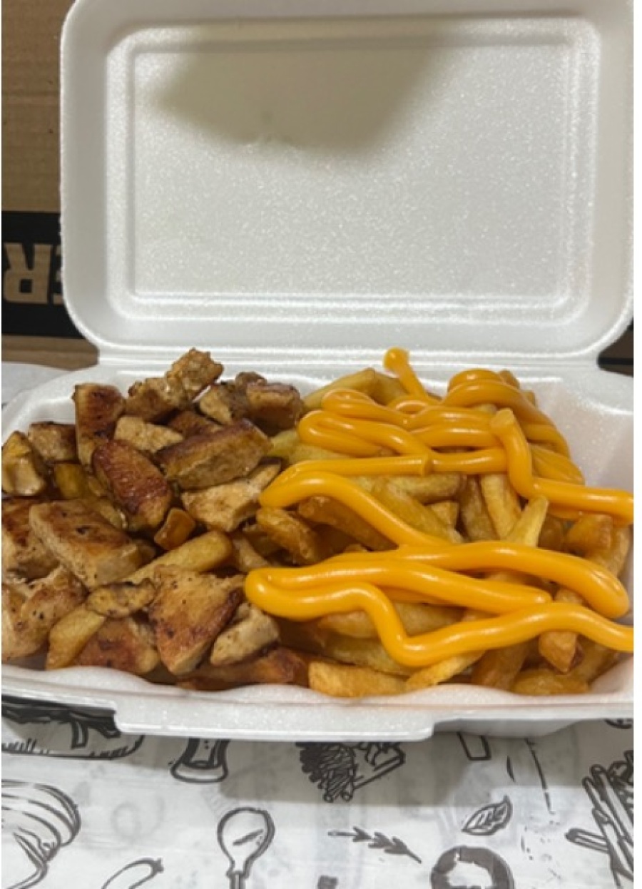 400g DE BATATA, FILÉ DE FRANGO E CHEDDAR.