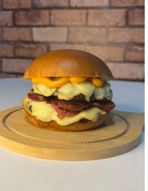2 Blend 100g, Pão Brioche, Queijo Mussarela, cheddar, calabresa.